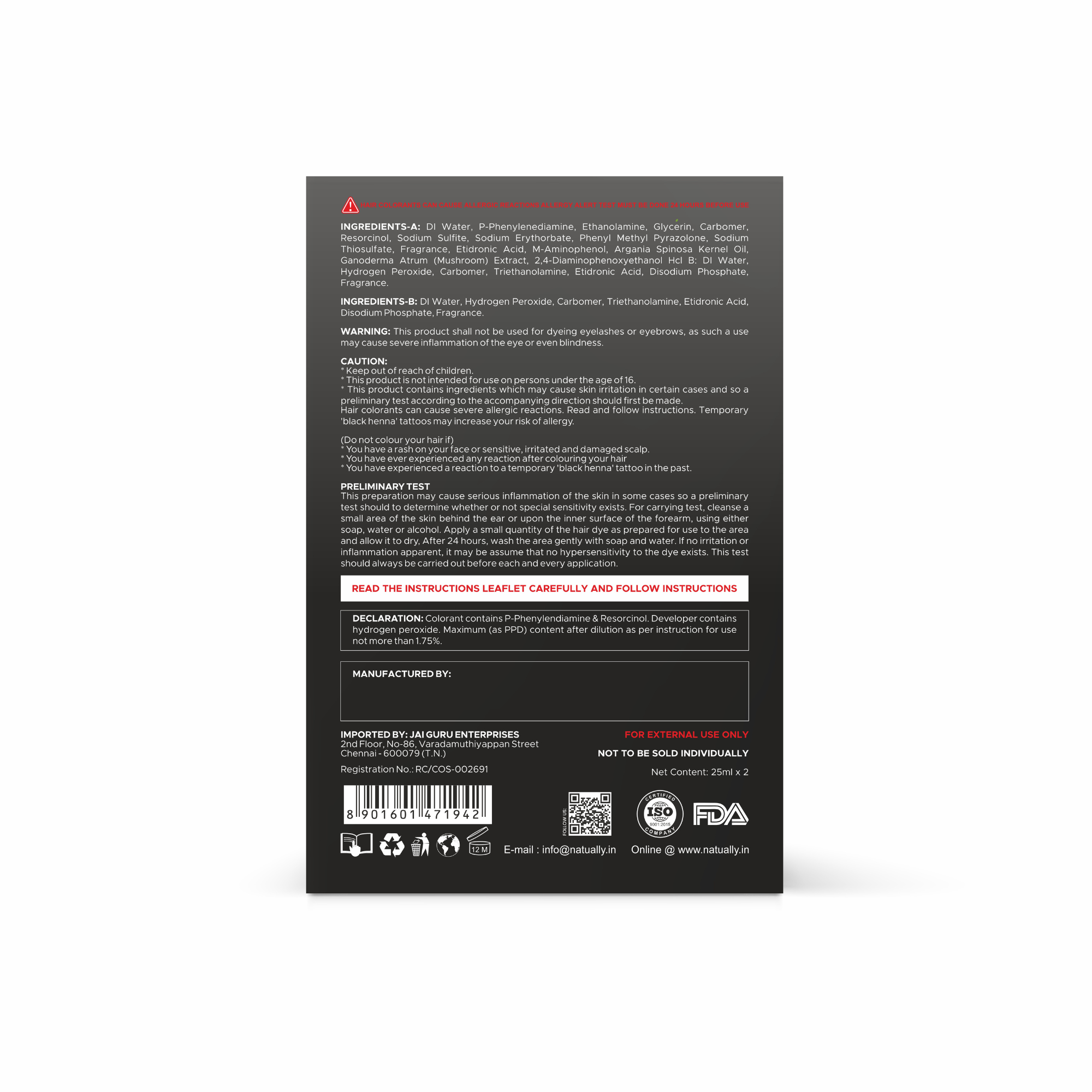 Formulated with natural extracts, this product strengthens hair while coloring, preventing dryness and maintaining softness. Quick and convenient, it delivers consistent results every time, giving your moustache and beard a well-groomed, professional look.